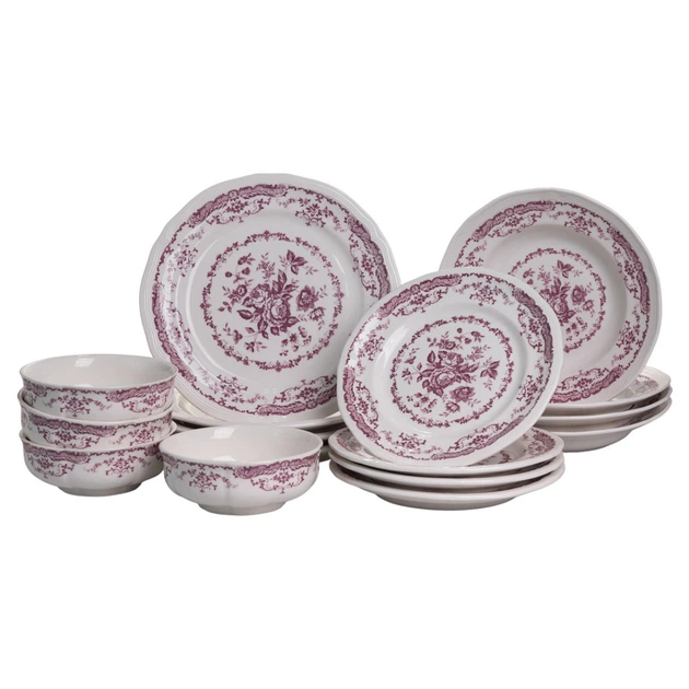 Столовий набір посуду тарілок 16 (шт) на 4 персони Bissi порцеляновий, обідній столовий сервіз тарілок Рожевий YY78-2A (A-04