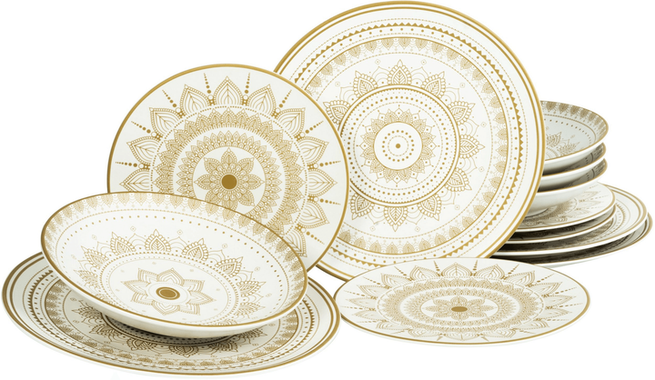 Набір столового посуду CreaTable Mandala Gold з 12 предметів на 4 персони кераміка золотисто-білий