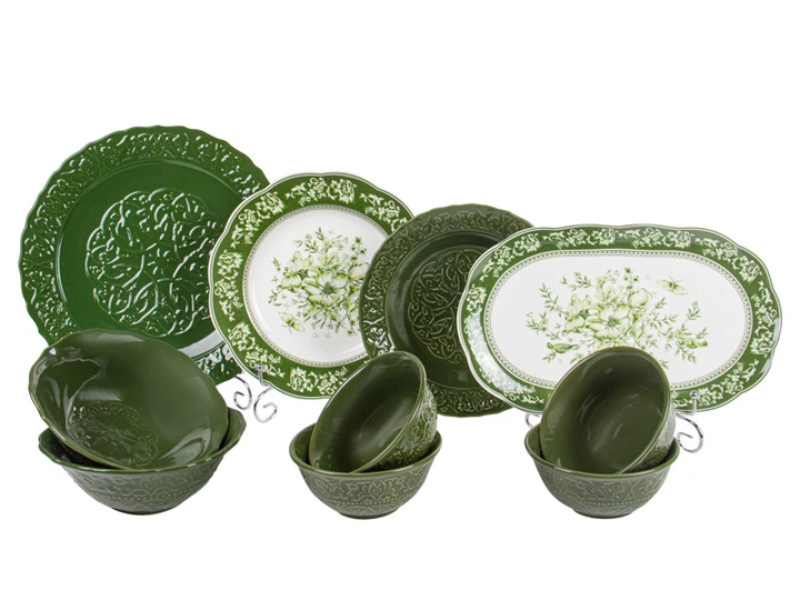 Сервіз столового посуду пастельний зелений 60 предметів 12 персон Ardesto Bagheria кам'яна кераміка