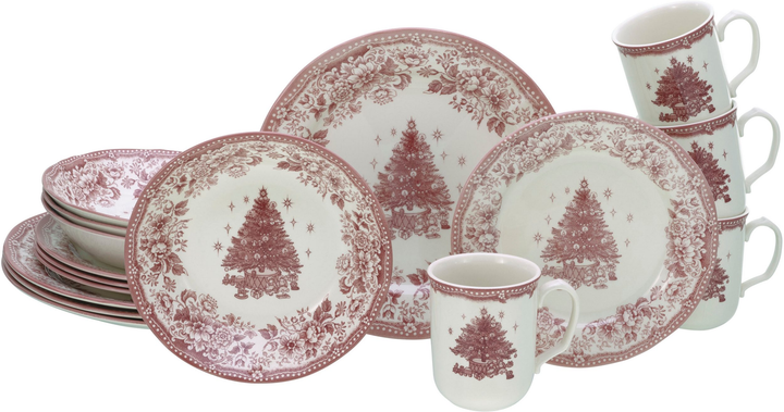 Набір столового посуду CreaTable Christmas Tree Red з 16 предметів на 4 персони кераміка червоний