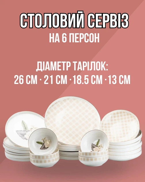 Столовий сервіз на 6 персон порцелянаовий рожевий HP23414