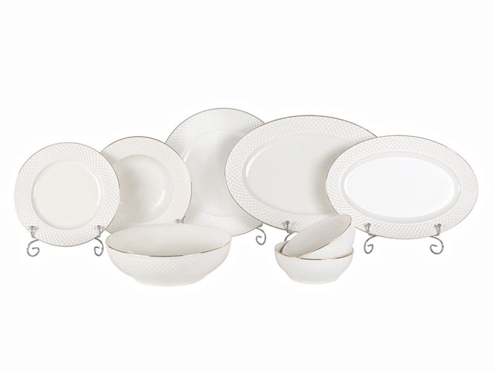 Сервіз столовий фарфоровий подарунковий набор 23 предметів ELMANI Діамант Голд білий с золотом