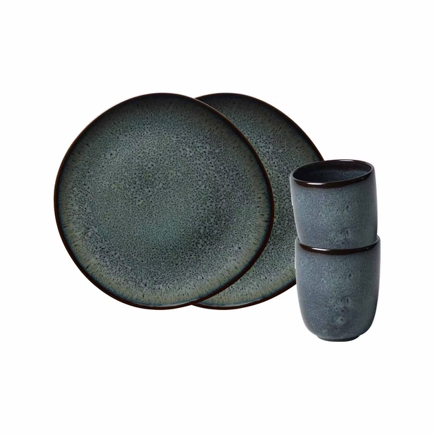 Набір столового посуду для сніданку Villeroy & Boch Lave Gris із 4 предметів на 2 персони преміальна камяна кераміка сірий
