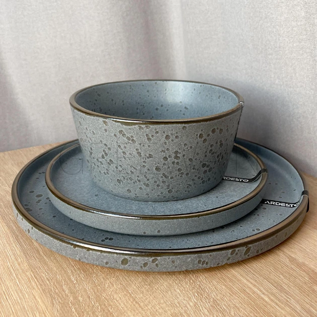 Столивий сервіз посуду 36 предметів на 12 персон Ardesto Fasano темно-сірий матовий кераміка