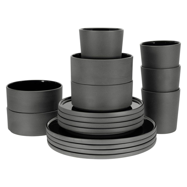 Набір столового посуду CreaTable Futuro Black з 16 предметів на 4 персони керамограніт чорний