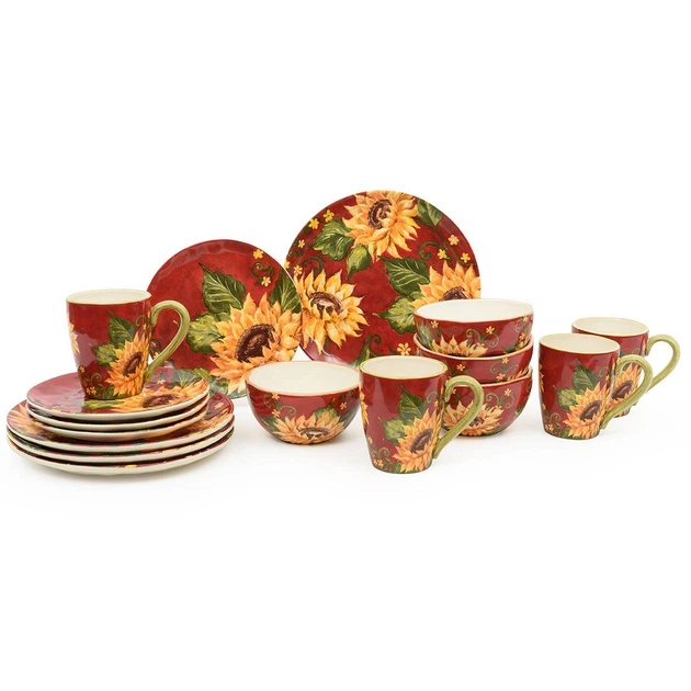 Керамічний сервіз чайно-їдальні з 16 предметів на 4 персони "Соняшники на заході сонця" Certified International