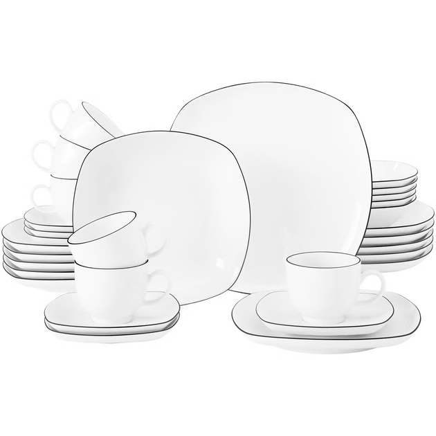 Набір столового посуду Seltmann Lido Black Line квадратний з 30 предметів на 6 персон преміальна порцеляна