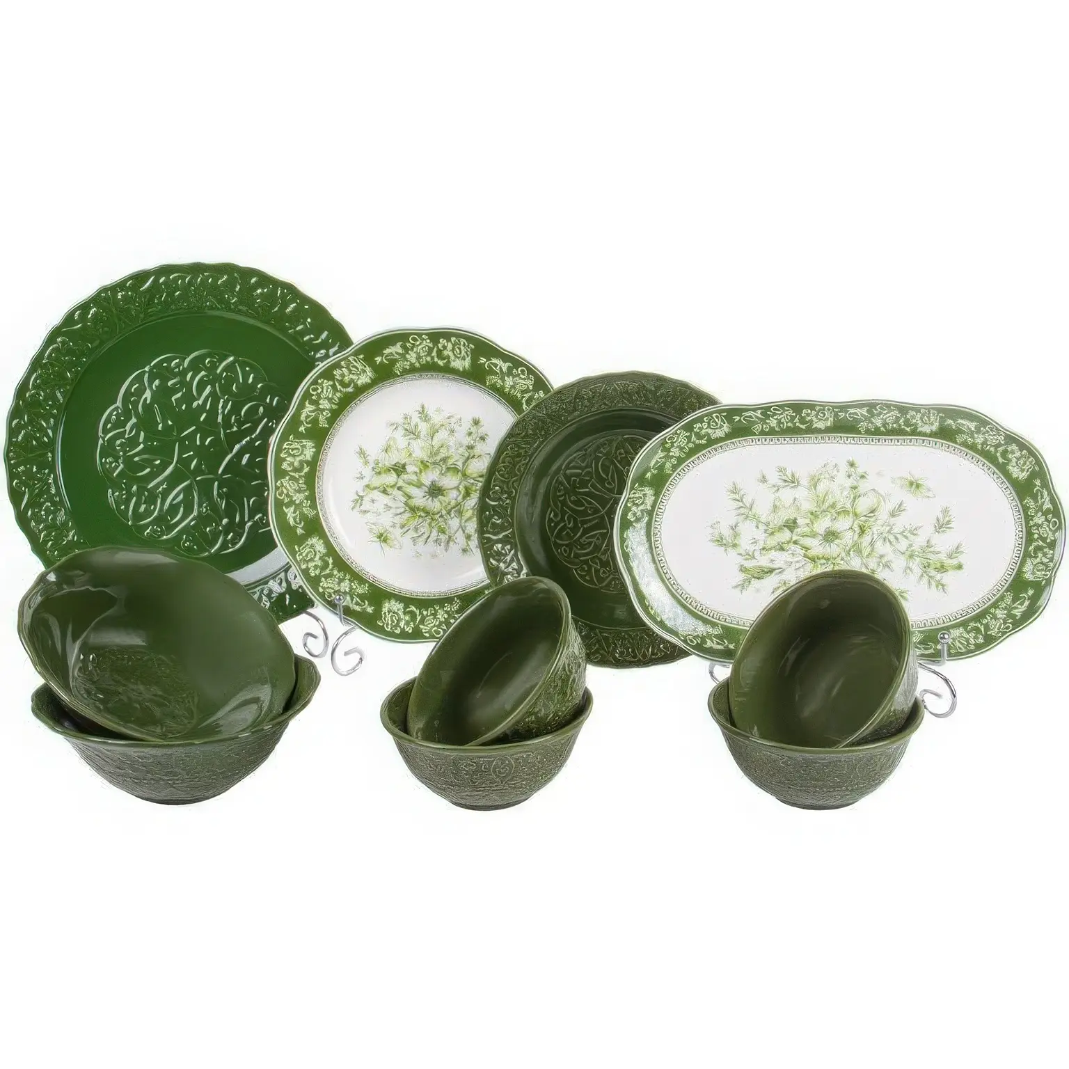 Столовий сервіз Джордано виготовлений з кістяної порцеляни, який відрізняється тонкістю, білосніжним кольором і міцністю. Цей матеріал містить в собі каолін, польовий шпат, глину, кварц і кістяне борошно. Сервіз розрахований на чотири персони і включає в себе 12 предметів: обідні тарілки, глибокі тарілки і десертні тарілки. По краях вони декоровані красивим візерунком