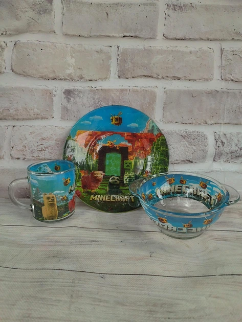 Дитячий набір столового посуду Metr+ Minecraft скляний 3 предмети MIN1