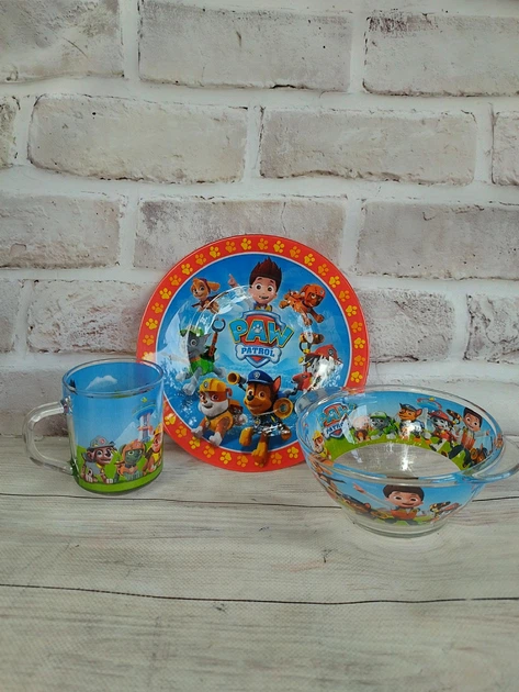 Дитячий набір столового посуду Metr+ Щенячий патруль скляний 3 предмети PAT1
