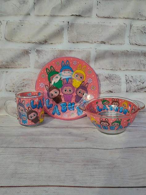 Дитячий набір столового посуду Metr+ Labubu скляний 3 предмети LAB
