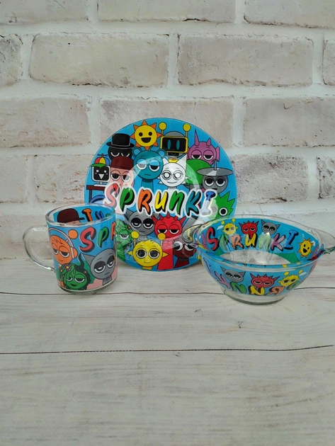 Дитячий набір столового посуду Metr+ Sprunki скляний 3 предмети SPR1