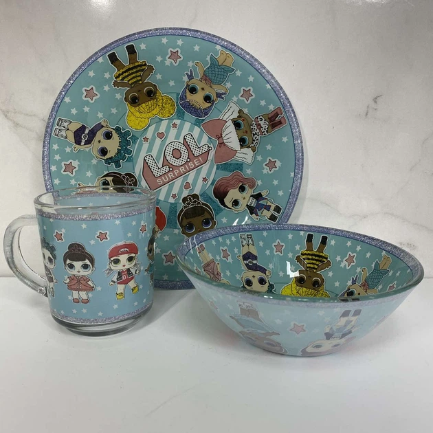 Набір дитячого скляного посуду 3 предмети "Лол" синій 4848-1