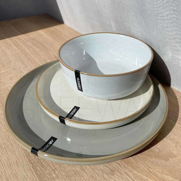 Столивий сервіз посуду 3 предмети на 1 персону Ardesto Apulia сірий, білий, бежевий кам’яна кераміка