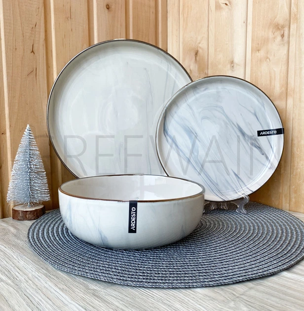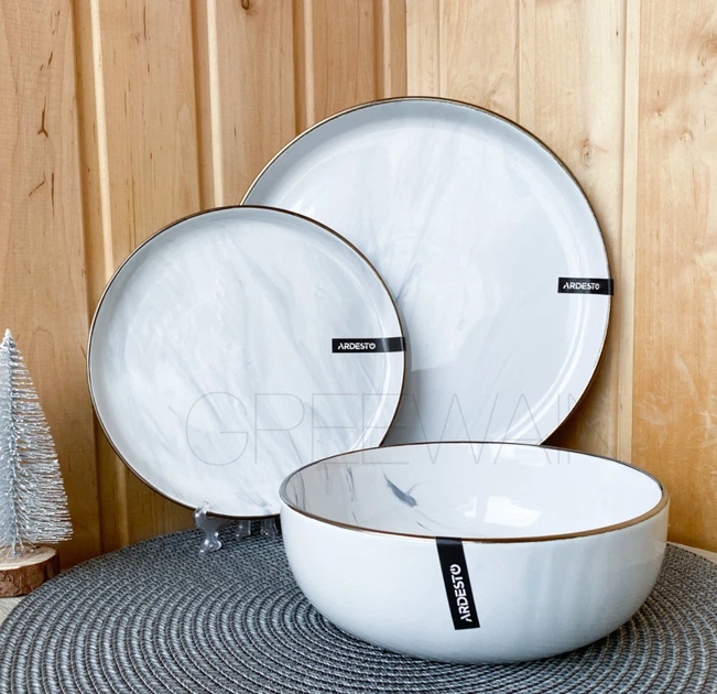 Сервіз столового посуду Ardesto Marmo 3 предмети на 1 персону білий мармур