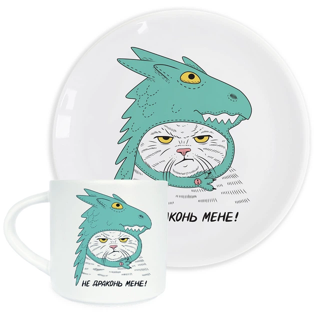 Тарілка та чашка «Кіт-дракон»