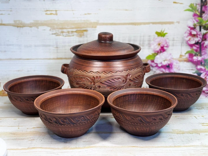 Набір посуду "Еко" Супник 3.5 л та 4 миски 600 мл глина