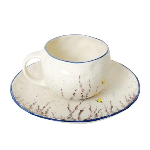 Набір тарілка та чашка Лаванда глиняного (керамічного) посуду на 1 особу Гражда Лавандовий