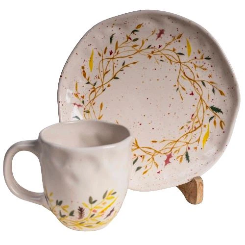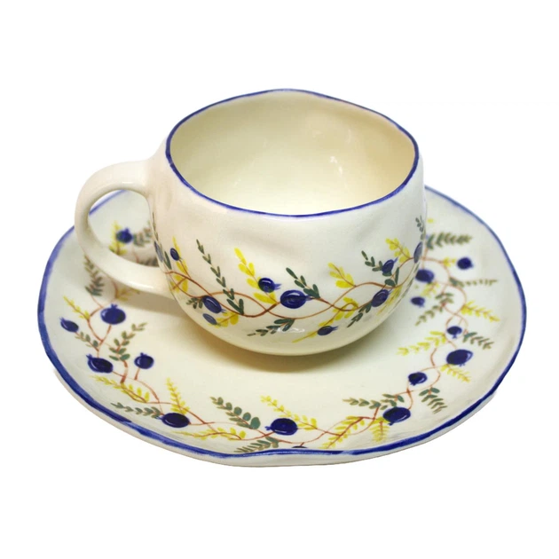 Набір блюдце та чашка Віночок глиняного (керамічного) посуду на 1 особу Гражда Жовтий
