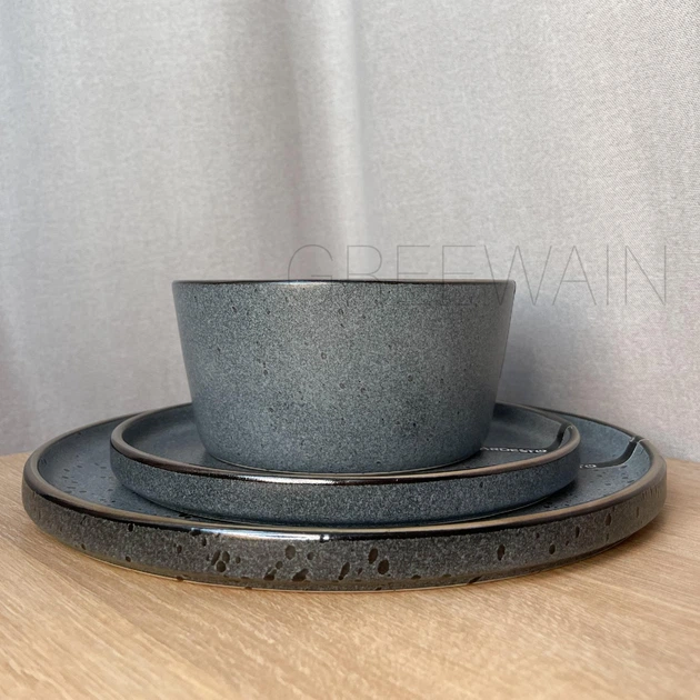 Столивий сервіз посуду 3 предмети на 1 персону Ardesto Fasano темно-сірий матовий кераміка
