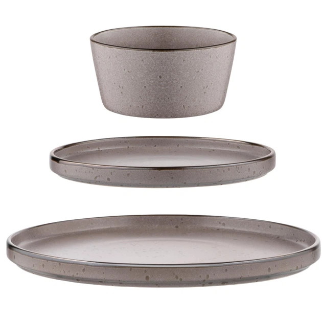 Столивий сервіз посуду 3 предмети на 1 персону Ardesto Fasano сіро-коричневий матовий кераміка