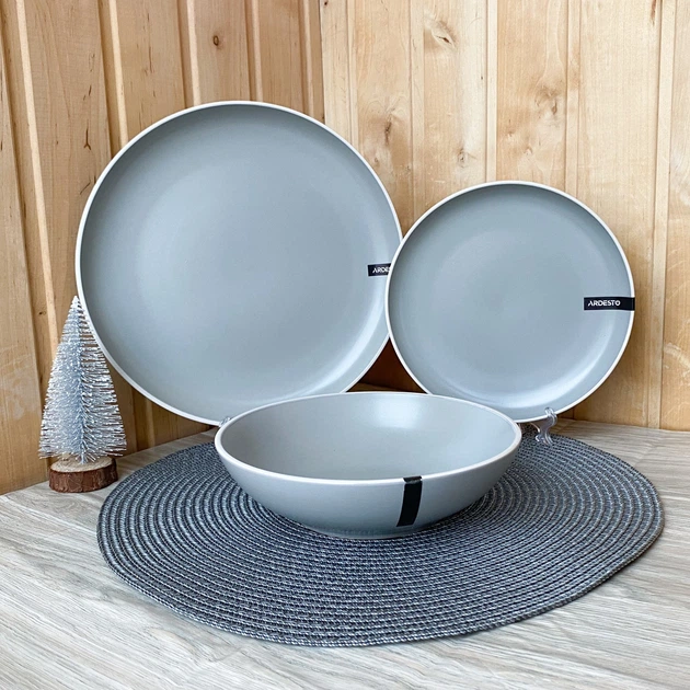 Столивий сервіз посуду 3 предметів на 2 персони Ardesto Apulia сірий кам’яна кераміка