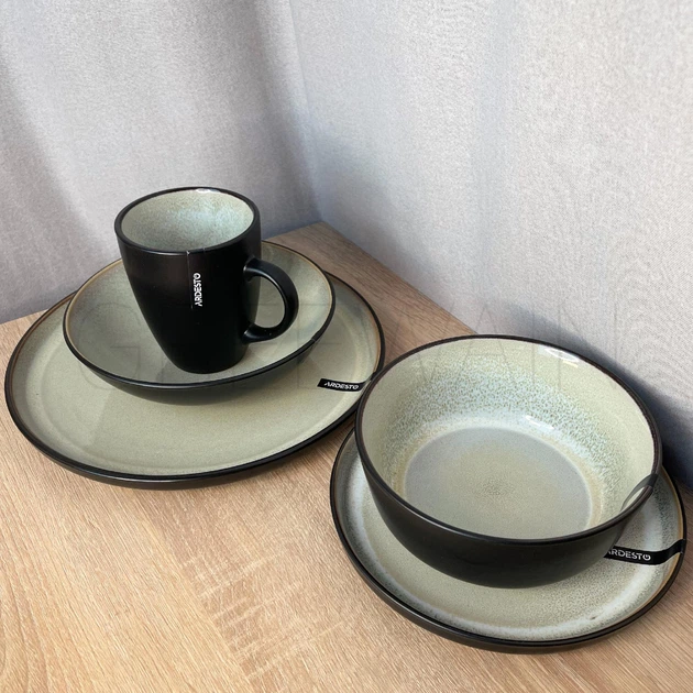 Столивий сервіз посуду 5 предметів на 1 персону ARDESTO Bolzano чорно-зелений кам’яна кераміка