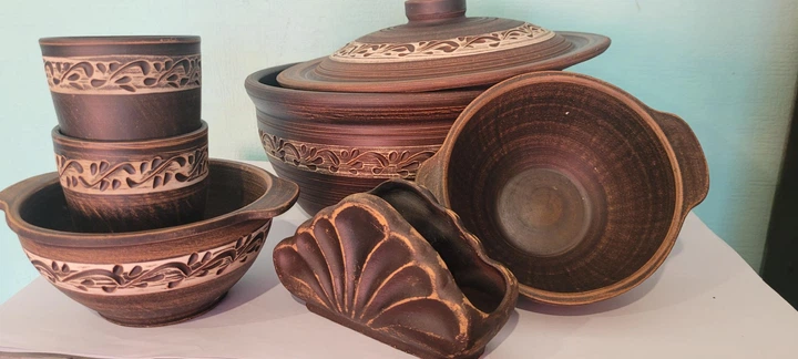 Набір посуду з червоної глини "Смачний обід " . Керамічний посуд