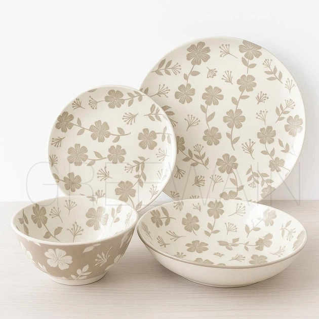 Набір посуду для двох 8 предметів Ardesto Ravenna біло-бежевий порцеляна з квітковим візерунком