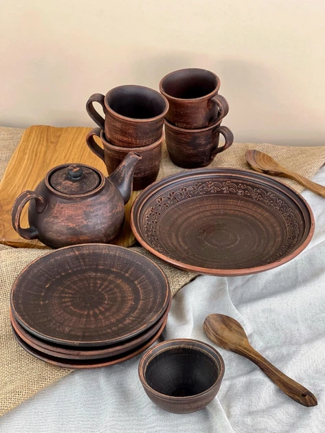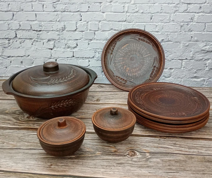 Набір посуду Vitar колос з червоної глини 9 предметів