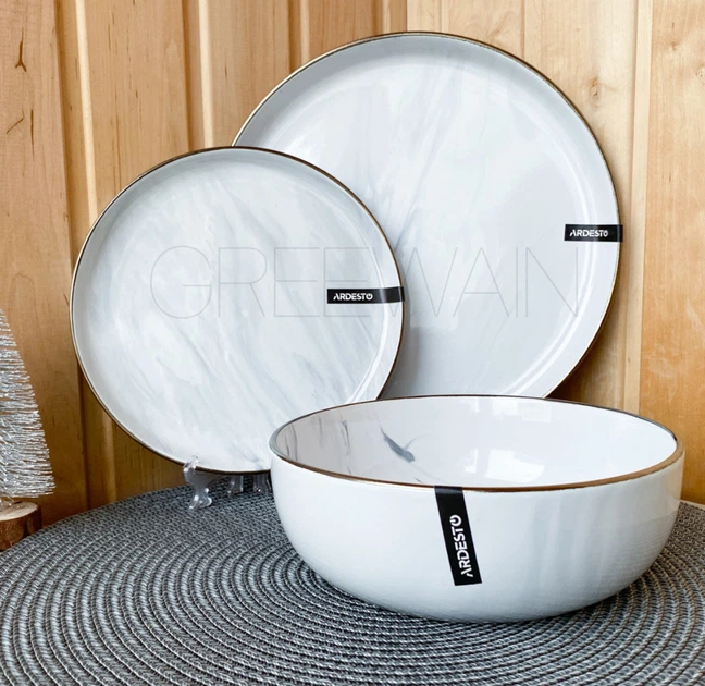 Сервіз столового посуду Ardesto Marmo 6 предметів на 2 персони білий мармур
