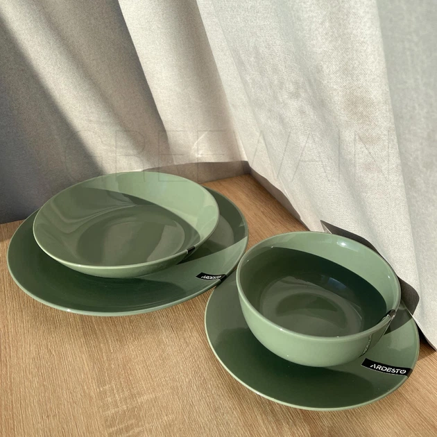 Столивий сервіз посуду 8 предметів на 2 персони Ardesto Capri зелений порцеляна