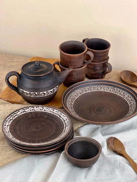 Набір глиняного (керамічного) посуду для чаювання на 4 осіб Гражда Ангоб