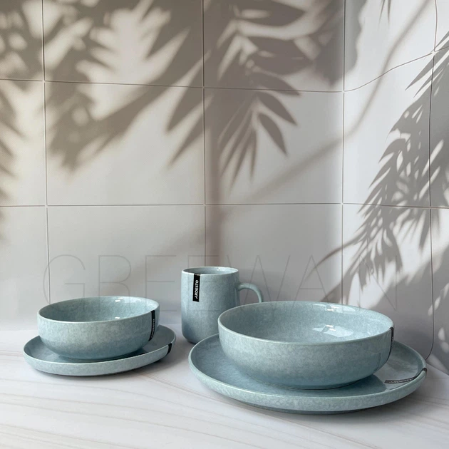 Столивий сервіз посуду 5 предметів на 1 персону Ardesto Loreto сіро-блакитний мармуровий порцеляна