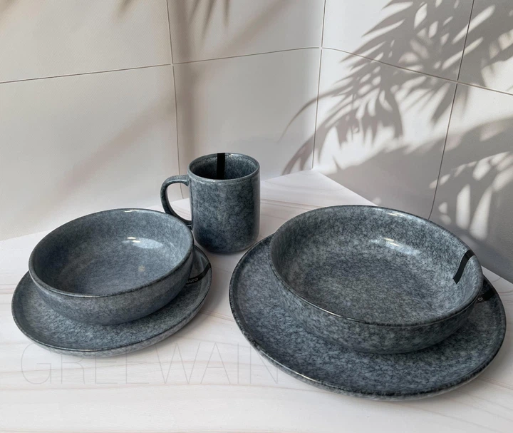Столивий сервіз посуду 5 предметів на 1 персону Ardesto Loreto темно-сірий мармуровий порцеляна