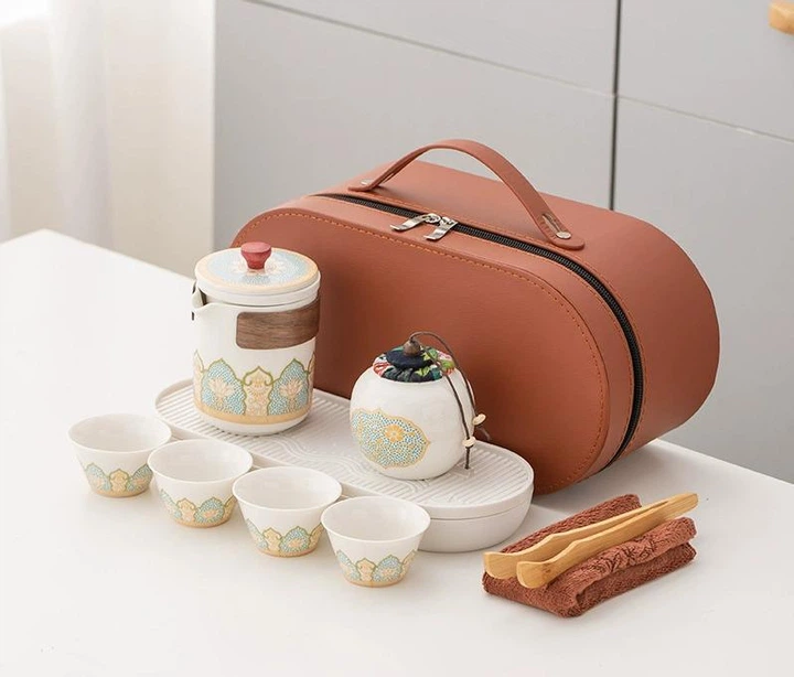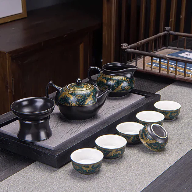 Унікальний керамічний чайний сервіз у старовинному стилі, вишуканий набір для чайної церемонії на 6 персон
