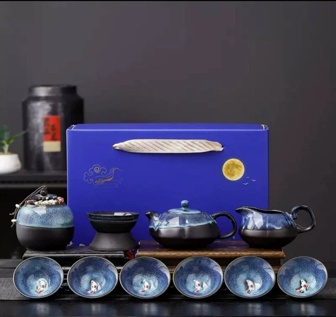 Чайний набір для церемонії на 6 персони в подарунковій упаковці (11 предметів) Синій