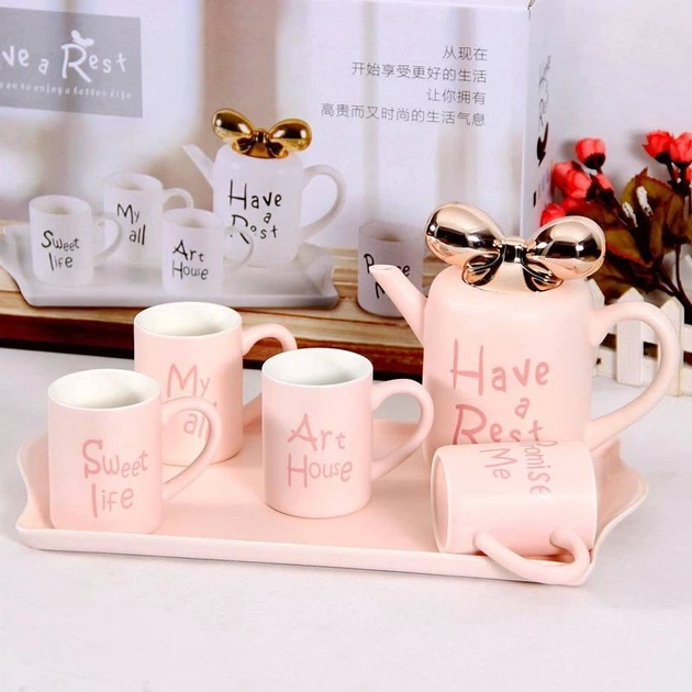 Чайний сервіз на підносі OLens Щасливе життя Про-8030-50 6 предметів рожевий