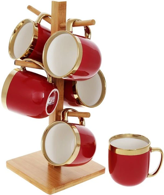 Чайний набір Золота Лінія 6 кружок 320мл на бамбуковій стійці, бордо (BD-905-228)