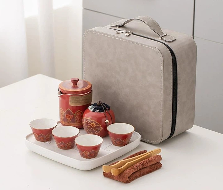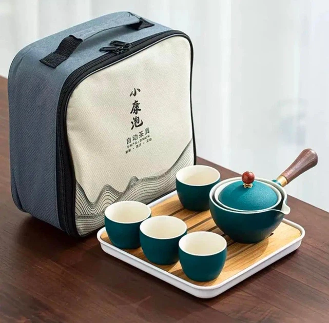 Набор для чайной церемонии из 6 предметов Гунфу ча Дорожный Китайский чайный сервиз, Зелений (716104)