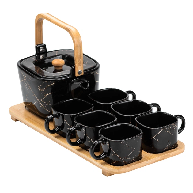 Чайний сервіз на 6 персон Yiwu Masala набір для чайної церемонії чайник з чашками на підставці Чорний