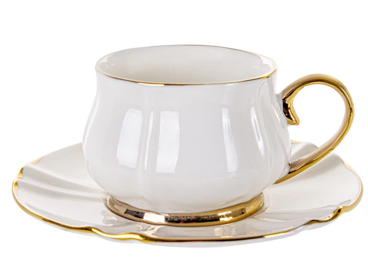 Чайний набір "Мармурова розкіш" - чашка з фарфоровим блюдцем, 320 мл, білий із золотом (805-728)