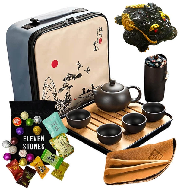 Дорожній набір для церемонії чаю Eleven Stones з чаєм пуер 20 шт і чайною фігуркою