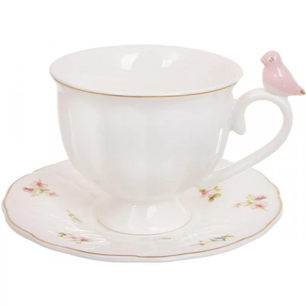 Чайний порцеляновий набір "Пташка Флорал" 6 чашок 250мл і 6 блюдець (119447)