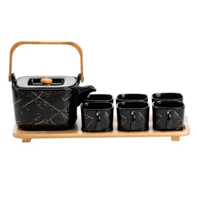 Чайний набір із підставкою, на 6 персон, чорний, сучасний 4880632