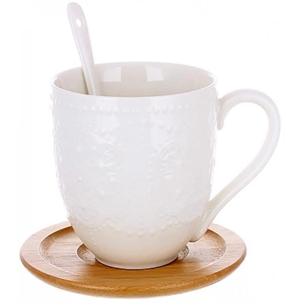 Чайний фарфоровий набір Ceram-Bamboo Grace на 2 персони, 2 чашки 350мл і 2 блюдця з ложками (3962)