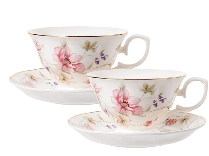 Чайний набір 2 чашки із блюдцями Камея 280 мл рожевий 245-S11