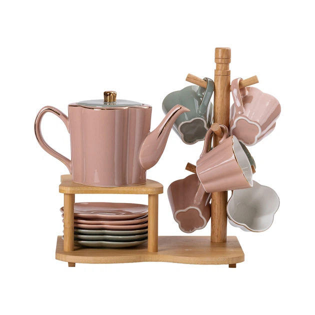 Керамічний чайний сервіз Clover на 6 персон з бамбуковою підставкою