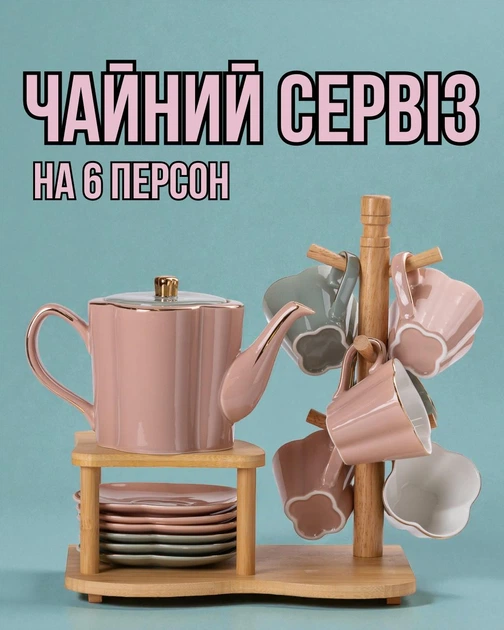 Чайний сервіз на 6 персон з бамбуковою підставкою HP-15-25