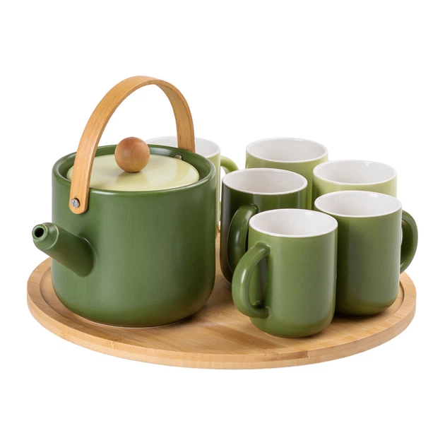 Чайний сервіз на 6 персон з бамбуковою обертовою підставкою зелений (LUG-HP-15-23)